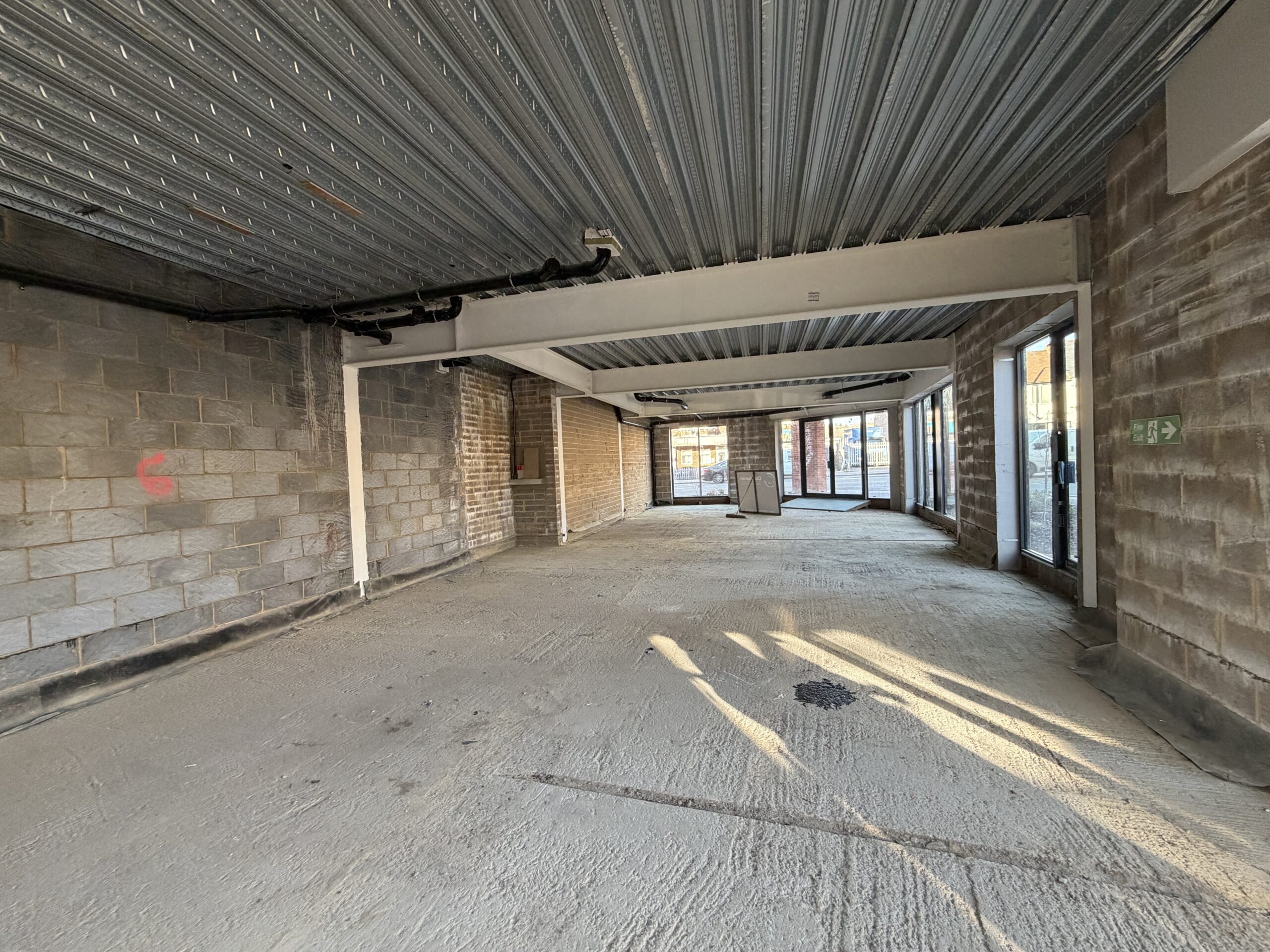 The unit is to be sold or leased in shell and core condition with glazed windows and entrance door, internal fire proofing and capped services.
