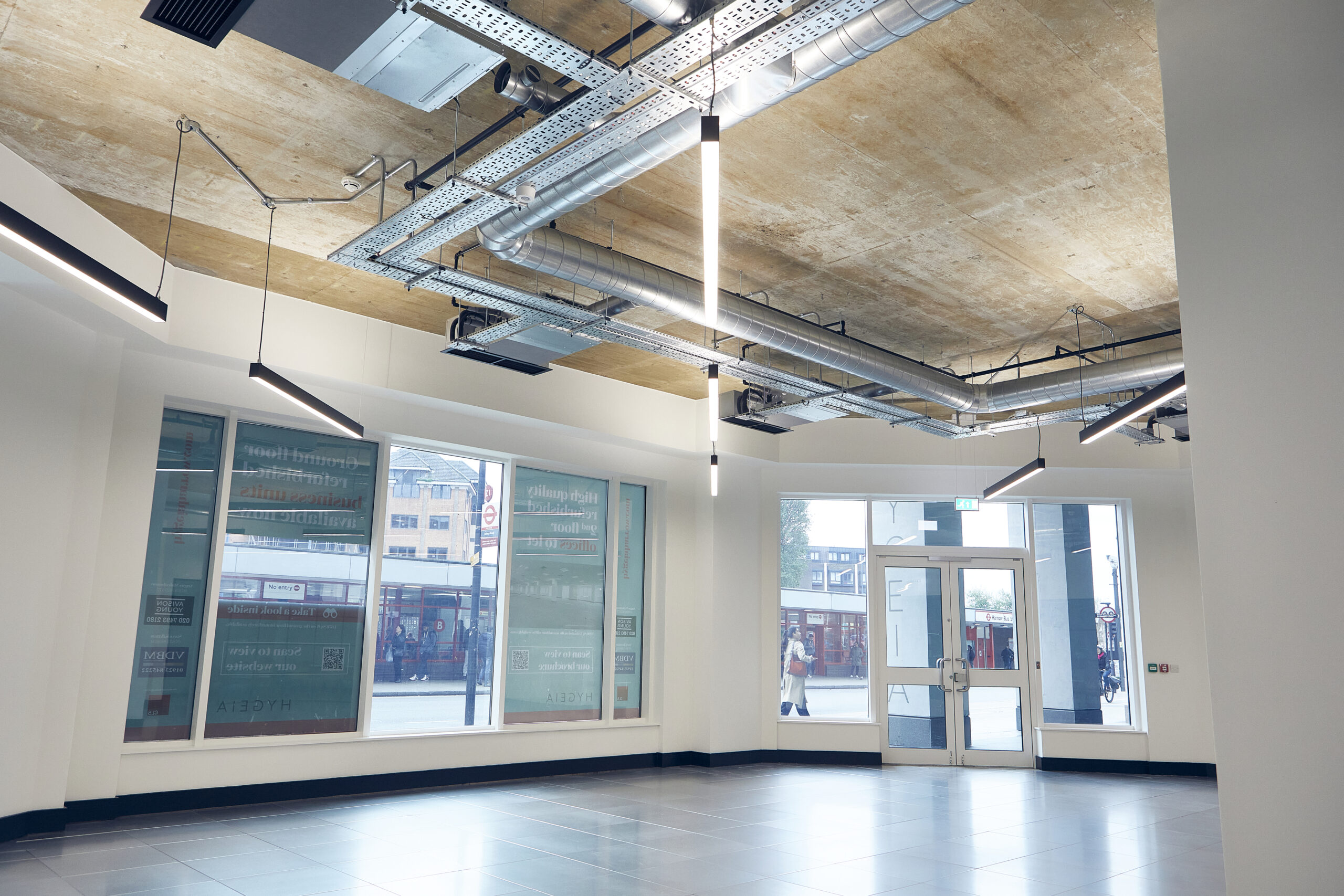 Hygeia is considered to be one of Harrow's best office buildings which features an impressive central glass atrium reception. The ground floor suite has been refurbished and has its own street entrance in addition to the main building reception. The offices feature high ceilings with exposed services, air conditioning and LED lighting. The suite is 1,676 sq ft with its own kitchen and parking for 3 cars.